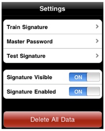 Sometimes you may forget your signature or can not draw it as expected. In these cases, you may enter the app. by typing the master alpha numeric password. This master password should be easy to remember but hard to guess.